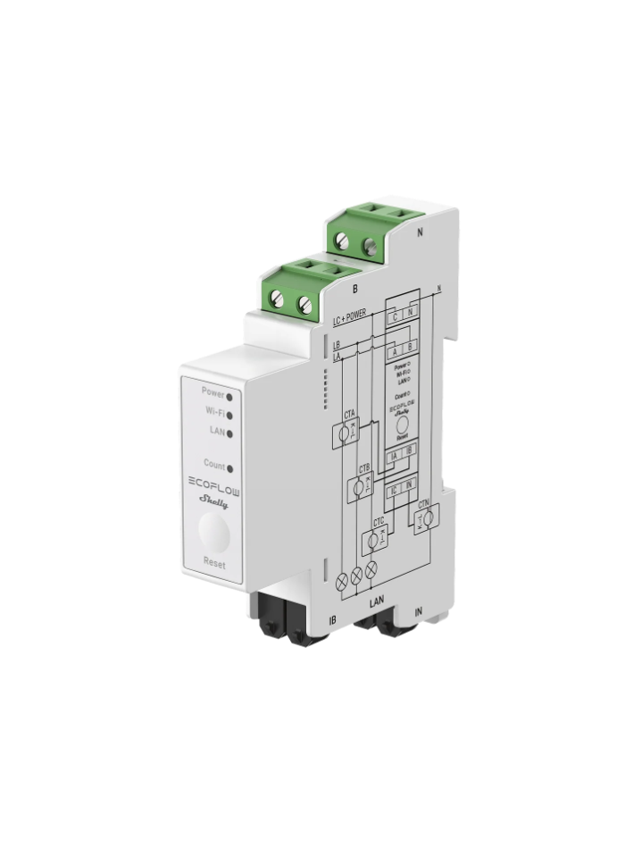 Le compteur communicant EcoFlow × Shelly Pro 3EM est une solution de monitoring énergétique avancée conçue pour les kits solaires avec batterie EcoFlow STREAM. Véritable passerelle entre votre installation électrique et l’écosystème intelligent EcoFlow OASIS, il assure une analyse complète de votre consommation et de votre production solaire en temps réel.