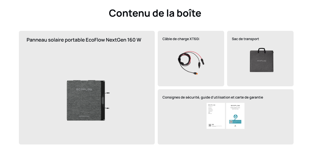 Oui, le panneau solaire EcoFlow 160W NextGen est parfaitement compatible avec toutes les stations d’énergie portables de la gamme DELTA et RIVER.